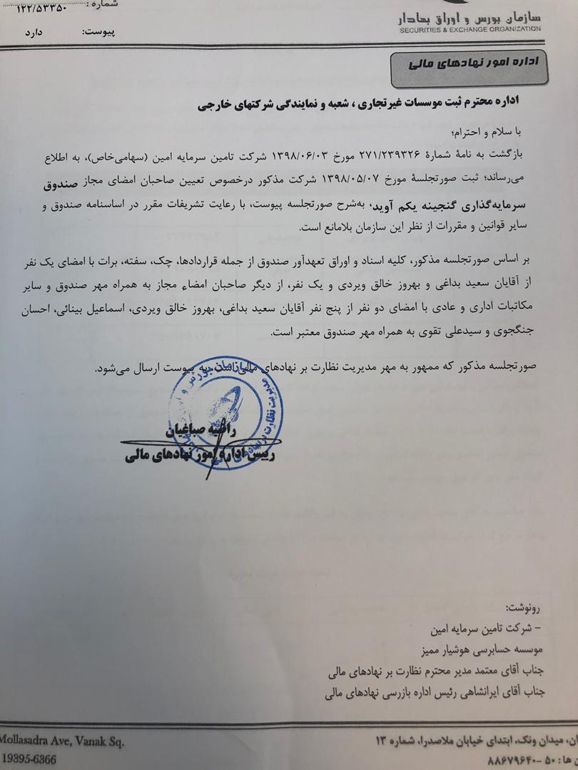 تغییر امضاداران صندوق سرمایه گذاری گنجینه یکم آوید