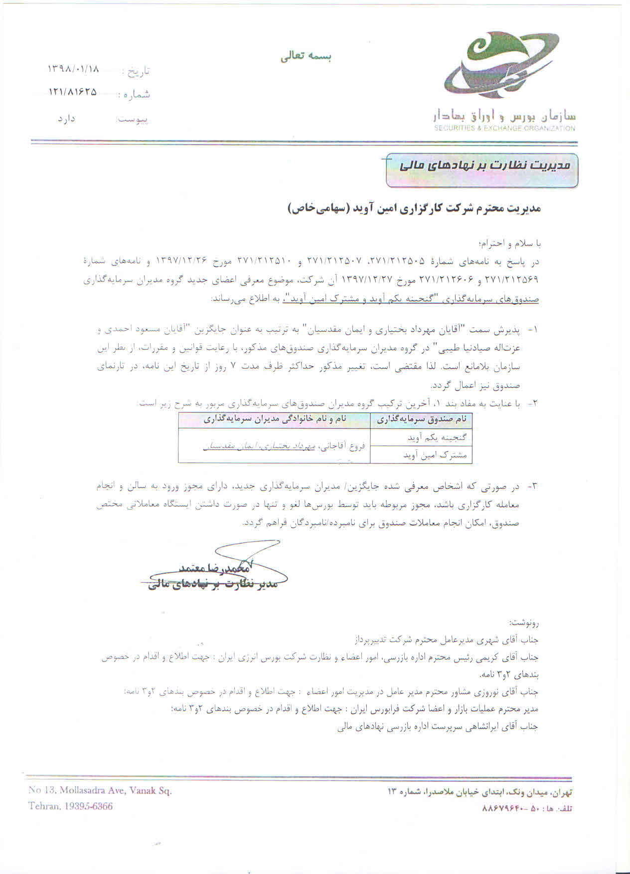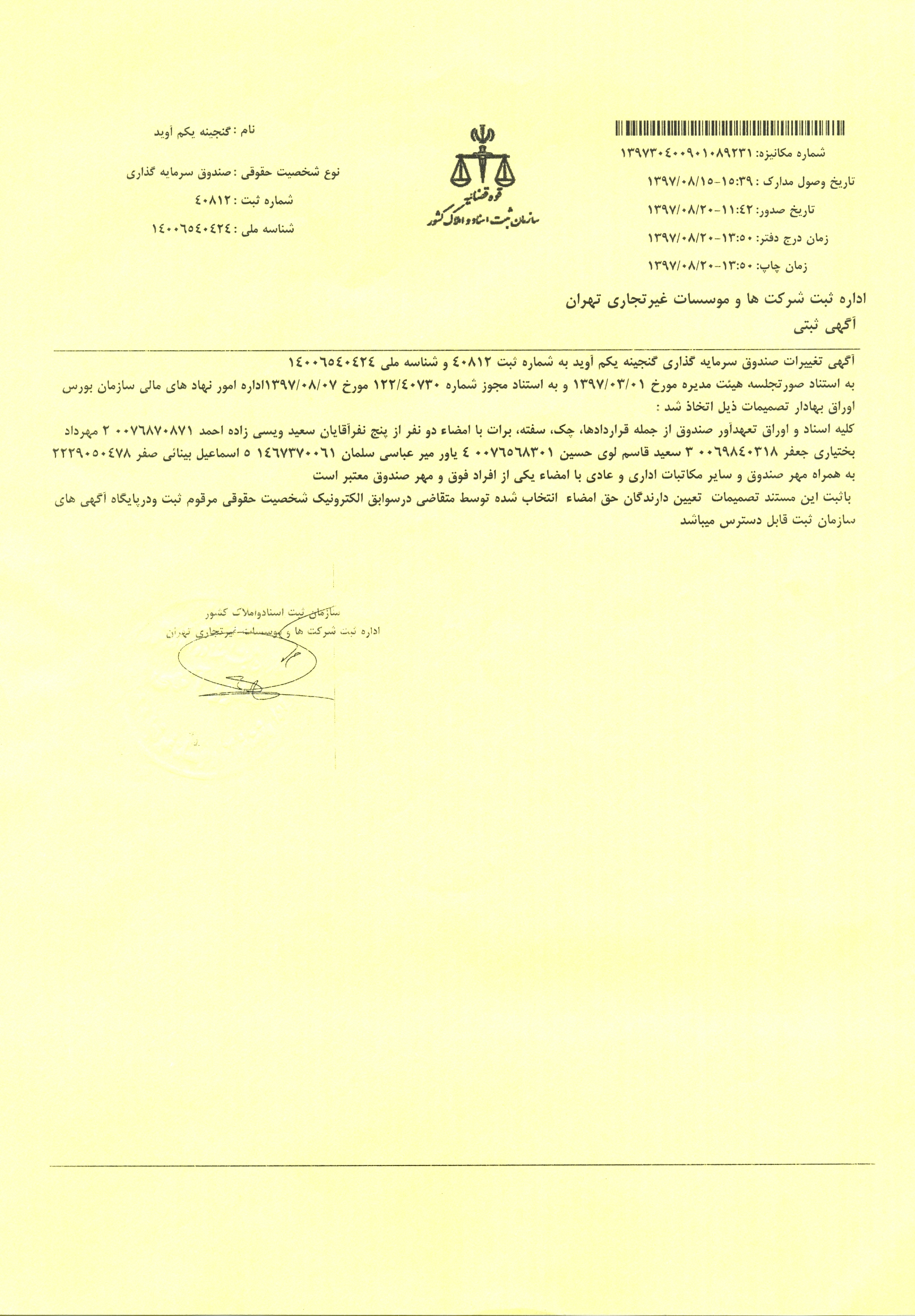 روزنامه رسمی تغییر امضاداران صندوق